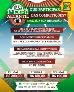 Se você gosta de desafios e diversão, essa é a sua chance de participar e ainda concorrer a prêmios! Garanta sua inscrição e venha fazer parte desse momento especial que celebra a nossa cultura e o orgulho de ser alcantilense!