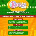 Fique atenta a data do encontro na unidade de saúde mais perto de você, e venha bater um papo conosco sobre “A importância da atividade física na gestação”.