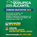 A Prefeitura de Alcantil, por meio da Secretaria Municipal de Assistência Social em parceria com o SESI, oferta cursos de qualificação presencial de forma gratuita.